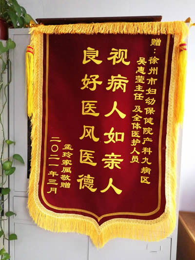 盛女士(shì)贈錦旗感謝我院婦科三病區梁(liáng)麗、楊曉及全體人員
