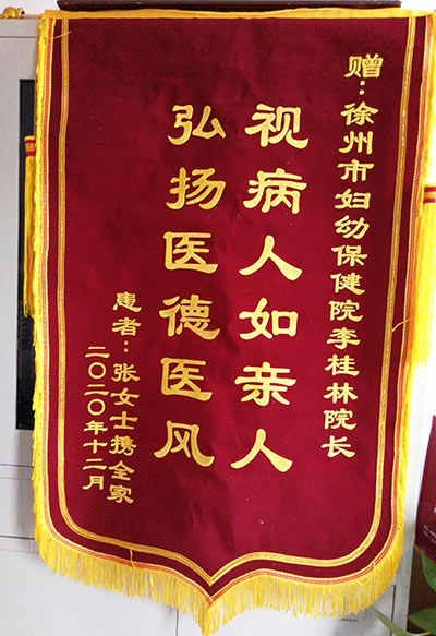 賈倍倍(bèi)贈錦旗感謝我院(yuàn)生殖免疫科胡(hú)振興(xìng)