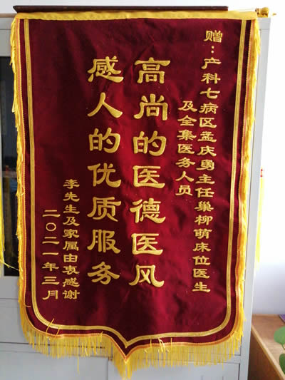 李先(xiān)生贈錦旗感謝我院產科孟慶勇、巢柳蔭季全體醫務人員