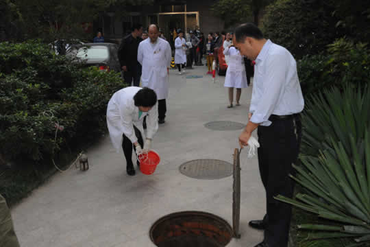 下午3時演練正式開始。保(bǎo)潔員高淑英(yīng)發現有一袋醫療廢物掉落地上,包裝袋破裂,部分醫療廢物散落地上。她立刻報告總務科、感染管理科和保衛科。相關科室人(rén)員趕至現場,感染管理科(kē)科長孫晚霞對(duì)醫療廢物危險程度進行初步評估後認為存在醫療廢物流失、泄露、擴散的情況,立(lì)刻(kè)電話(huà)報告領導小組組長並發出(chū)啟動醫療(liáo)廢物管理意外事件(jiàn)應急預案指令。領導小組成員全(quán)部按時到達,黃勁磐副院長、王海艦副院長指揮各部門配合處理。保衛科首先快(kuài)速拉(lā)起警戒線,隔離、封鎖現場(chǎng)並放置警示(shì)欄(lán);兩名身著隔離服的保潔員立即對散落的醫療廢物進行(háng)收集、清(qīng)理,將醫(yī)療廢物封袋,貼上標識,轉運至醫療廢物中轉站(zhàn)並對汙染地點進行濕式(shì)清潔和消毒;最後,感染管(guǎn)理科對處置後的現場進行(háng)了消毒效果評估,待符合要求後解除封鎖。