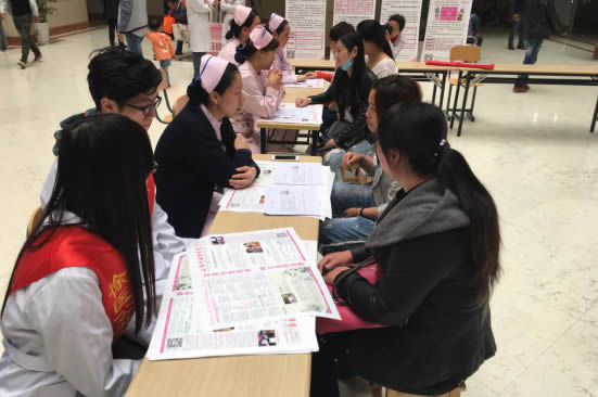 同學(xué)們耐心細致的(de)為(wéi)準媽媽們解釋孕期各階段的營養問題,並現場發放自製(zhì)的(de)孕期相關營養宣教資(zī)料(liào),幫(bāng)助孕產婦充分了解食物(wù)營養與健康,提高健康素養,實現科學營(yíng)養合(hé)理膳食,建立營(yíng)養健康新生活。本次活動得到了病人的一致好評(píng)。