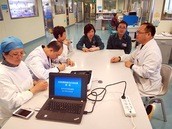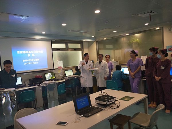 演練分為理論(lùn)培訓、現場處置及總結(jié)點評三個環節。演練前感染管理科劉淼就醫院感染暴發(fā)的定義、疫情分級、處置(zhì)流程相關知識進行培訓。隨後,新生兒醫學中心劉鬆林主(zhǔ)任宣(xuān)布演練開始,各相關部門人(rén)員(yuán)接到電話報告後立即來到模擬現場,按預定程(chéng)序展開(kāi)了緊張有序的演練。