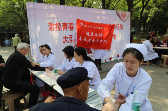 4月27日上午,我院團委聯合共青團泉山區委、湖濱街道團工委、市(shì)中(zhōng)心醫院團委、市兒(ér)童醫院團委在湖濱街道湖西社區舉行大型專家義(yì)診活動,我院婦女(nǚ)保健科、兒童保健(jiàn)科、青春期保健科等6個(gè)科室(shì)的專家參(cān)與了此(cǐ)次義診活動,除了為社區居民提供免費醫療谘詢、健康檢查、疾病防治等服務(wù),還針對身體異常的居民給予就醫意見,受到(dào)了社(shè)區居民的(de)歡迎。