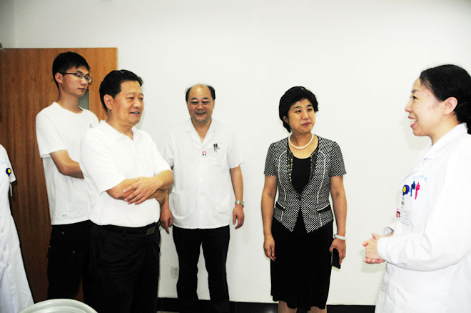 8月18日上午,值首屆“中(zhōng)國醫師節”來(lái)臨之際,副市長李燕、市政府副秘書(shū)長周廣春、市衛生計生委主任吳憲(xiàn)等,親(qīn)臨(lín)我院慰問奮戰在衛生(shēng)與健康一線(xiàn)的醫師,並向全院醫師致以節日的祝賀和問候。院長黃大文、黨委(wěi)書記葛(gě)丕等全體領導班子成員陪同(tóng)慰問。