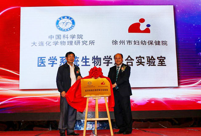 (許(xǔ)國旺主任與黃大文院長為“中國科學院大連化學物理研究所與徐州市婦幼保健院醫學係統生物學聯(lián)合實驗室(shì)”揭牌)