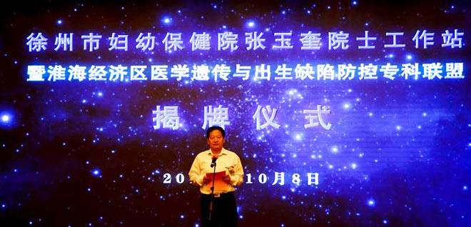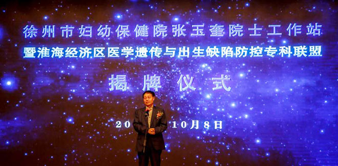 10月8日(rì)下午,徐州市婦幼保健院“張玉(yù)奎院士工作站暨淮海經濟區醫學遺傳與(yǔ)出(chū)生缺陷防控專科聯盟”揭牌(pái)儀式在東區鉑驪酒店隆重(chóng)舉行。中國科學院院士、博士生導師、中科院大連(lián)化學物(wù)理研究所研究員張玉奎院士,中科院大連化學物理研究所代謝組學實驗室(shì)主任許國旺研究員,徐州(zhōu)市人民政府李燕副市長,徐州醫科大學鄭葵陽校長,徐州市衛計委吳憲主任,市婦(fù)幼保健院領導班子全體成員以(yǐ)及來自全國各地的專家學者100餘人參加揭牌儀式。揭牌儀式由市衛計委(wěi)常霞副(fù)主任主持。