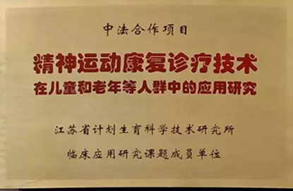 近日(rì),我院正式成為江蘇省計劃生育科學技術研究所臨床與應用研究課題成(chéng)員單位。兒童(tóng)保健科褚英主任代表醫院參加了中法合作項目(mù) “精神運動康複學診療技術在兒童和老年等人群中的應用(yòng)研究”(江蘇省科技廳BM2018033-1)培訓(xùn)班結業儀式。