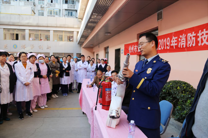 11月14日下午,我院2019年“119”消防演練比賽在辦公樓前廣場(chǎng)隆重舉行。今年的(de)活(huó)動主題是“防範(fàn)火(huǒ)災(zāi)風險,建設美好家園”。市(shì)衛健委副主任楊軍、市消防支隊(duì)科長豐(fēng)茂武、市(shì)衛健委辦公室主任趙永(yǒng)平(píng)以及部分院領導蒞臨現場觀摩演練,全院225名幹部職工參加活動。