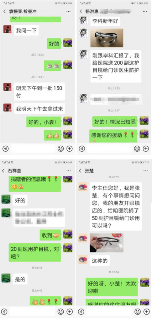 院辦公室馮誌剛聯係捐(juān)獻護目鏡200副;