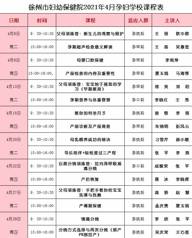 ◆最終解釋權歸徐州市婦幼保(bǎo)健(jiàn)院所有。