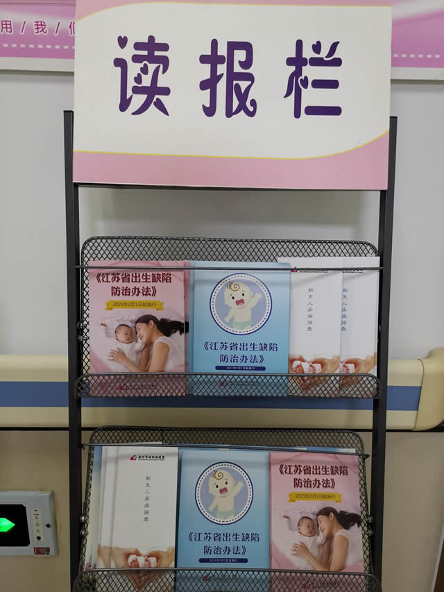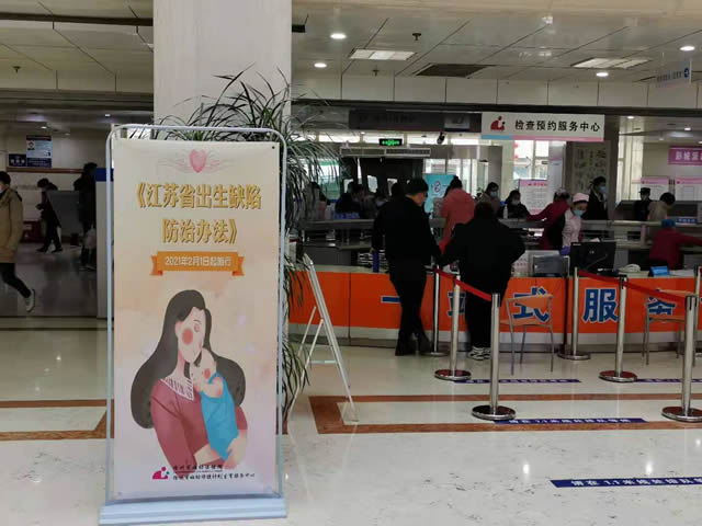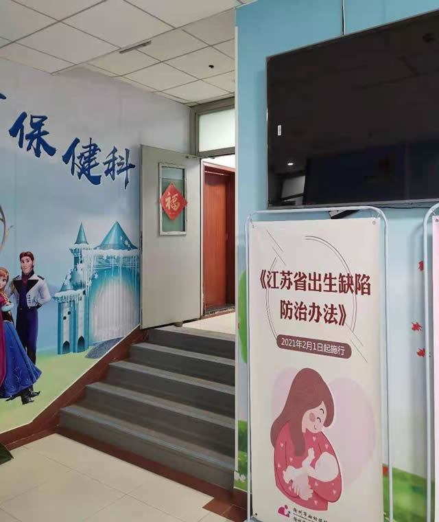 徐(xú)州市婦幼保(bǎo)健院在門診大(dà)廳放置“易拉寶”,宣傳《江蘇省出生缺陷防治辦法》