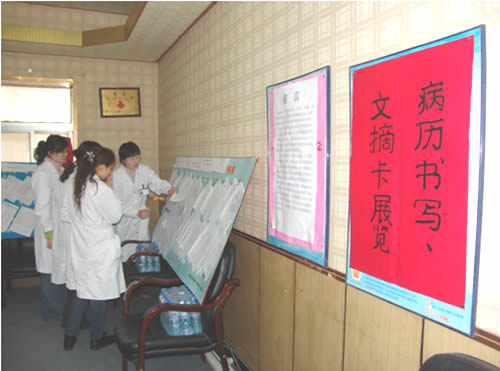 為提高(gāo)醫療質量,確保(bǎo)安全醫療(liáo),從3月15日起,市婦幼(yòu)保健院(yuàn)舉辦為期一周的 “病曆書(shū)寫、文摘卡”展覽,共展出:規範(fàn)住院病(bìng)曆35份(fèn)、門診病曆及處方20張,缺陷住院病(bìng)曆(lì)60份、門診病曆及處方15張,優秀文摘卡150張。全院各科臨床醫生110人(rén)參(cān)觀了展覽,其中43名醫生書寫了觀後感言。他(tā)們普遍認為此次展覽觸動很大,表示在今後工(gōng)作中再(zài)忙(máng)也要寫好病曆,這既是職業要求,也是(shì)對病人負責。參觀展覽的(de)醫生邊看邊議,並(bìng)就如何練好基本功,牢固樹立質量意識、權益意識(shí),積極投身醫院管理年活動中去,做(zuò)一名合格醫生,進行現場交流,收到了預期效果。