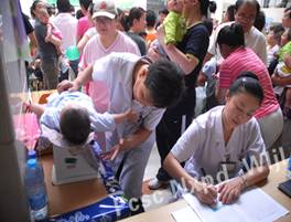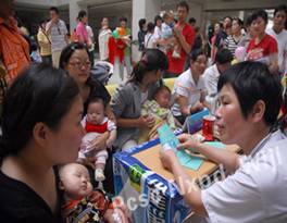 為慶祝“六·一”國際兒童節,提高全社(shè)會的兒童保健意(yì)識,市婦幼保健院在(zài)門診一樓大廳(tīng)舉辦(bàn)了“迎六· 一(yī)媽(mā)咪寶(bǎo)貝快樂營”活動。兒童保(bǎo)健專家為可愛的(de)寶貝(bèi)們免費(fèi)體檢、義診,並特邀親子園老師和參加活動的家長、孩子一起進行手指操彩虹傘爬(pá)行比賽(sài)等親子活動。
