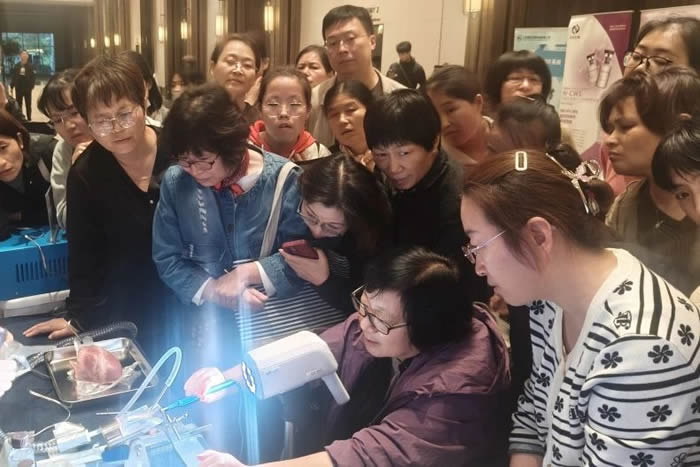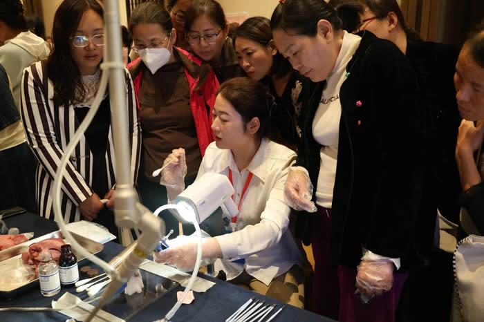 為加深學員(yuán)對理論知識的吸收和應(yīng)用,18日下(xià)午,學員分四組進行了現場實操培訓。畢(bì)蕙教授詳細介紹了宮頸電環切(qiē)術的指征(zhēng)和手術技巧,並進行了現場宮頸LEEP手術教學。學員們利用教學模型開展陰道鏡檢查、宮頸(jǐng)LEEP術、CO2激光等模擬(nǐ)訓練。梁(liáng)慧主任及宮頸科骨幹醫(yī)師分別進行了操作示範(fàn)及指導。現場的學習氛圍極其熱烈,學員們收獲頗豐。
