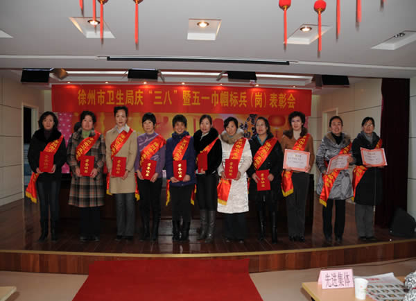 3月8日(rì),在第100個“三八”國際勞動婦女節到來之際,市衛生局在市婦幼保(bǎo)健(jiàn)院召開“徐(xú)州市衛生(shēng)局迎百年三八暨五(wǔ)一巾幗標兵(崗(gǎng))表彰大會”。會上,授予11位同誌 “徐州市(shì)衛生局五一巾幗標兵(bīng)” 稱號,,授予9個女職工集體“徐州市衛生局五一巾幗標兵崗”榮譽稱號。市婦幼保健院趙玉環主任和產(chǎn)科七病區分別榜上有名。希望全院廣大女職工向先進學習,積極投身兩個文明建設,發揚工人階級主人翁精神,積極參加“雙爭(zhēng)”競賽活動(dòng),為醫院發展做(zuò)出應有的貢獻。