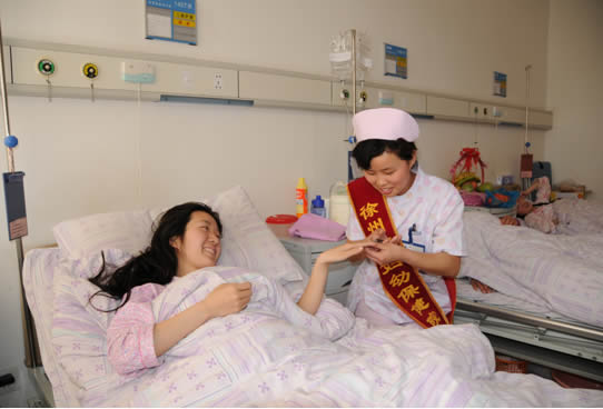 為紀念“5.12”國際護士節,大力弘揚南丁格爾“無私、博愛、奉獻”的護(hù)理精神,根據衛生部關於開展“誌願護(hù)理服務”的(de)通知,市婦幼保健院於近日開展了誌願護理服務活(huó)動。 20名護理人員利用業餘時間,深入(rù)門診、病房(fáng),開展誌願護理服務:陪同患者進行輔助檢查;接(jiē)送(sòng)手術患者;為患者進行基礎護理;給患者講授健康知識和進行康複指導等,誌願護理服(fú)務(wù)活動的開展,受(shòu)到病陪人的廣泛好評。