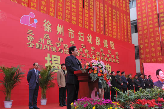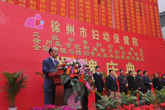 江蘇省衛生廳郭興(xìng)華廳(tīng)長、徐州市人民政府張敬華市長、徐州市人大李君超副主任(rèn)、徐(xú)州市政協劉兆勤(qín)副主(zhǔ)席、衛生部內鏡臨床診療質(zhì)量評價專家委員會主任委員、中(zhōng)南大學生物醫學工程研究院院長張陽德教授、首都醫科大學附屬(shǔ)北京婦產醫院、北京市婦幼(yòu)保健院曹連元院長、徐州醫學院吳永平院長、江蘇省衛生廳規(guī)財處沈敏華處長、徐州市人民政府周建洪秘書長、徐州市人民(mín)政府王誌華副秘書長(zhǎng)、徐州醫學院鄭葵陽副院長、徐州市衛生局王文學書記(jì)、徐州市衛(wèi)生局吳憲局(jú)長(zhǎng)出席慶典儀式。
