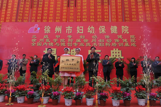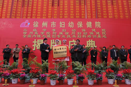 郭興華廳長、張敬華市長,吳永平院長、市人(rén)大李君超(chāo)副主任,張陽德教(jiāo)授、市政協(xié)劉兆勤副主席,分別為“三級(jí)甲等婦幼保健院” “徐州醫學院(yuàn)附屬婦幼保健院(yuàn)”、“全國內鏡與微創專業技術(shù)婦(fù)科培訓基地”揭牌。