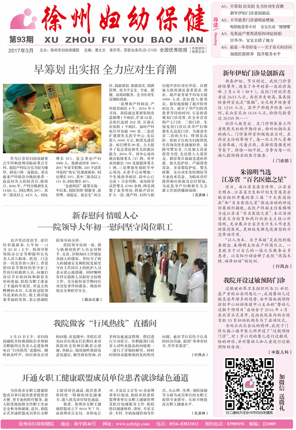 徐州市婦幼(yòu)保健院院(yuàn)報第(dì)93期(qī)(2017年3月)