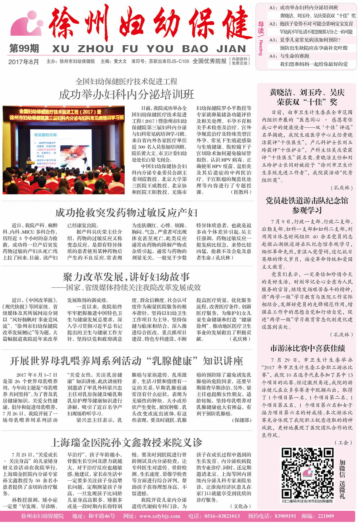 徐州市(shì)婦幼(yòu)保(bǎo)健院(yuàn)院報(bào)第99期(2017年8月)