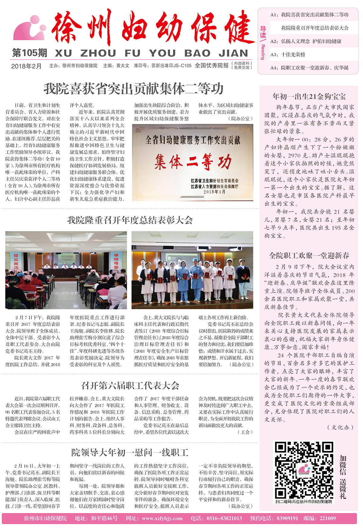 徐州市婦幼(yòu)保健院院報第105期(2018年(nián)2月(yuè))