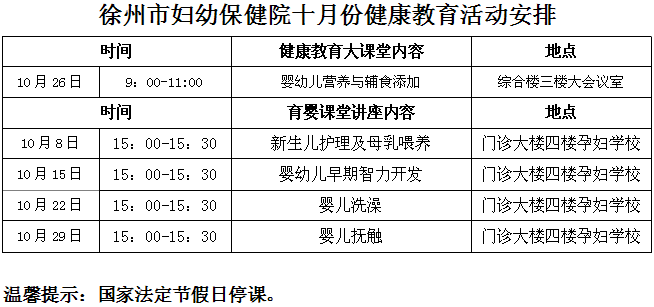 徐州市婦幼保健院9月份健康教育活動安排(pái)