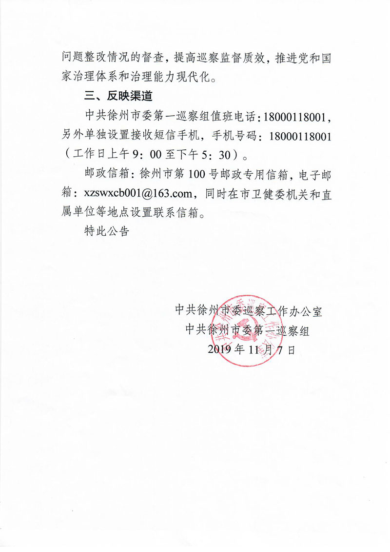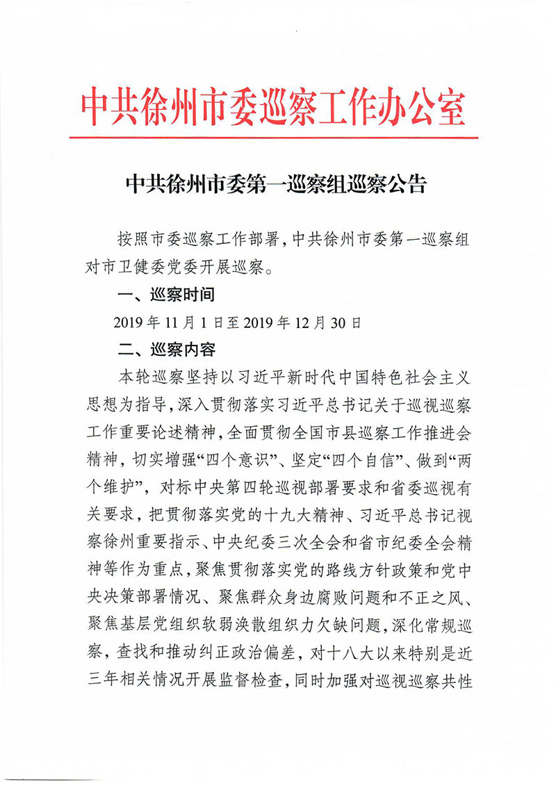 中共徐州市委第一巡察(chá)組巡(xún)察(chá)公告