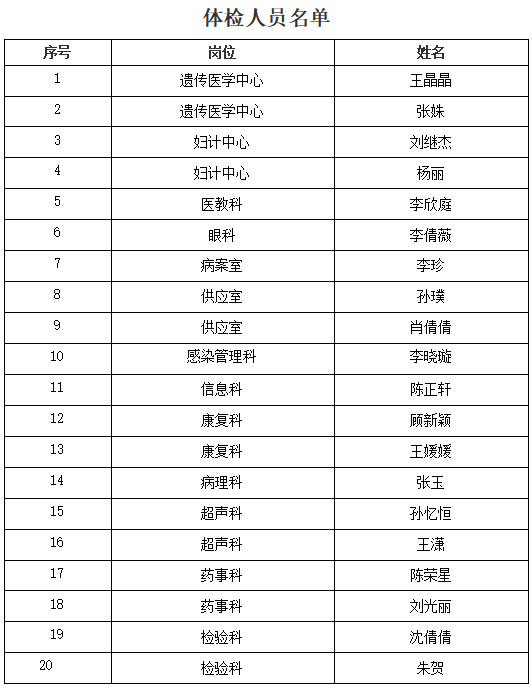 徐州市婦幼保健(jiàn)院公開招聘合同製工作人員,經(jīng)筆試及麵試,下列人員進(jìn)入體檢程序(名(míng)單附後)。請進入體檢程序人員於2018年9月26日(下周三)早晨7:40空腹到門診大廳集中(攜帶本人二代身份證)。