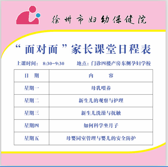 徐州市婦幼保健院2016年8月份(fèn)孕婦學校課程表