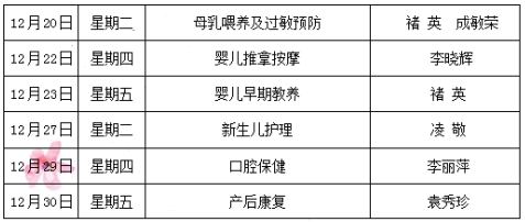 徐州(zhōu)市婦幼保健院2016年12月孕婦學校課(kè)程安排