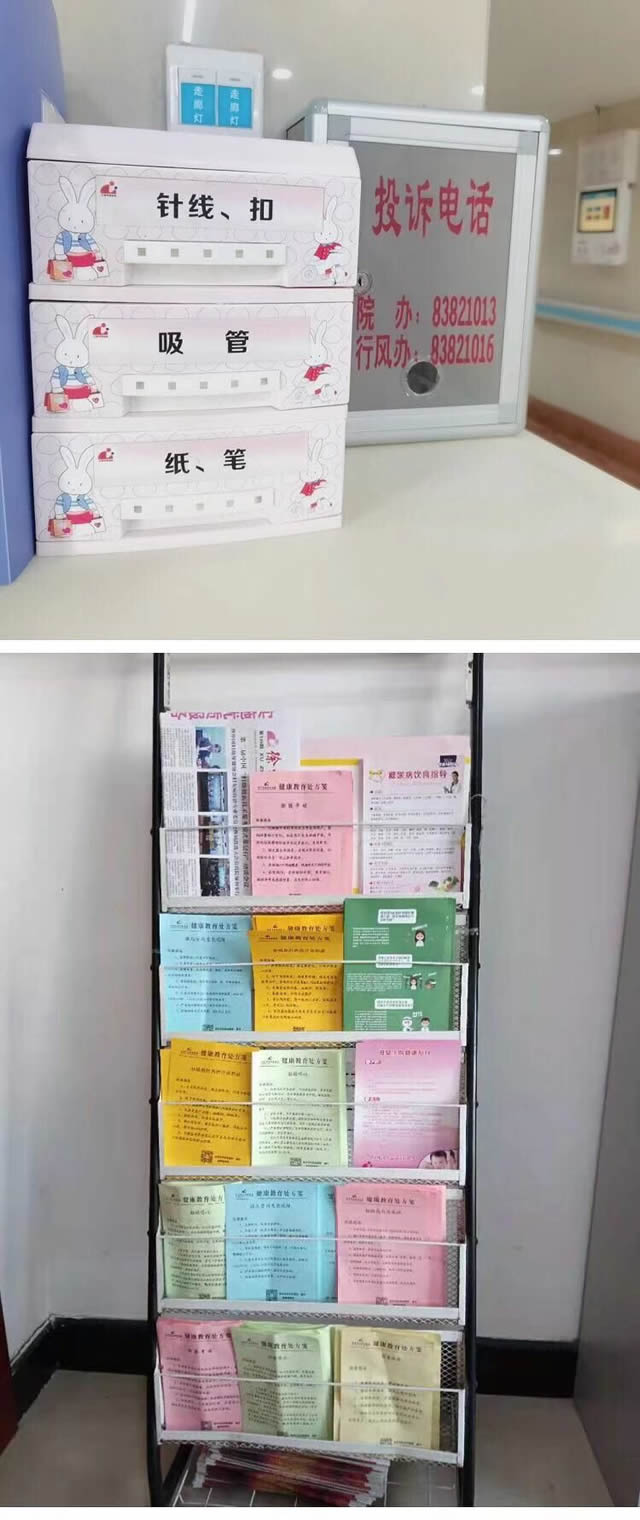 在生活方麵,91成人网站設(shè)有(yǒu)“便民箱”,盡可能把大家需要的(de)生活用品備好(hǎo),以(yǐ)解不時之(zhī)需。在健(jiàn)康教育方麵,91成人网站在病區設置健康教育宣傳欄,針對(duì)產前合並不同疾病的預防護理以及產後可進行(háng)的(de)飲食運動(dòng)都有詳細(xì)的(de)講解,供大家閱覽。
