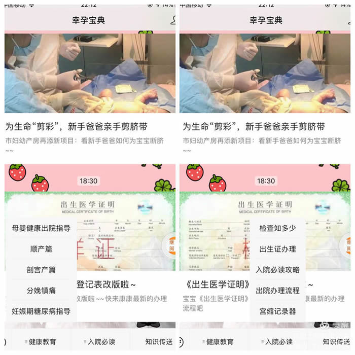 自2017年始,六病區便建立了幸孕寶(bǎo)典(diǎn)公眾號,將一些將康教育的(de)內容(róng)進行整合並發布在公眾號上。醫院廣泛推廣,現在“幸孕寶典”已經被各產(chǎn)科科(kē)室所應用(yòng)。內容涉及(jí)產前、產後(hòu)、寶寶喂養、母乳喂養各(gè)個(gè)方麵,每位入(rù)院產婦通過掃(sǎo)碼關注便(biàn)能隨時查看上麵的(de)內容,護士在公眾號內各個環節會針對孕產婦留言進行反饋,通過隨時隨地的網絡互動,大大提高了健康教育的效果。一位在(zài)六病區住了三個多月的產婦說(shuō):“我從保胎就住在六病區,入院的時候就關注了公眾號,裏麵東西很全麵,從(cóng)保胎注意事項(xiàng)到產後注意事項(xiàng),從嬰兒洗澡撫觸(chù)到母乳喂養,很細致,很全麵,讓我學到了很多知識,現(xiàn)在看幸孕寶典成為了我一個習慣。”