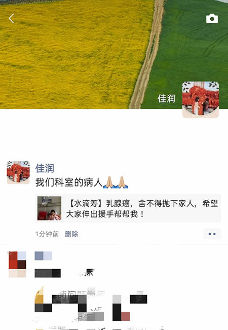除了科室捐款,大家也積極幫助分享水滴籌到朋友圈,幫助他從社會平台籌更(gèng)多的(de)善款。