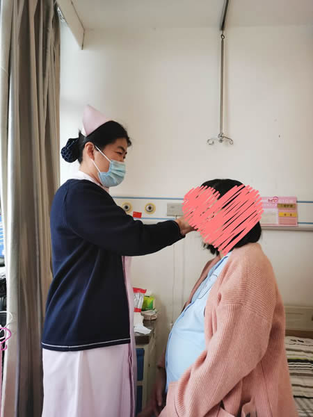 護理(lǐ)組長(zhǎng)薛小敏貼心為劉豔梳理頭發,做好晨間護理,讓(ràng)她(tā)孕期也保持美美(měi)噠!
