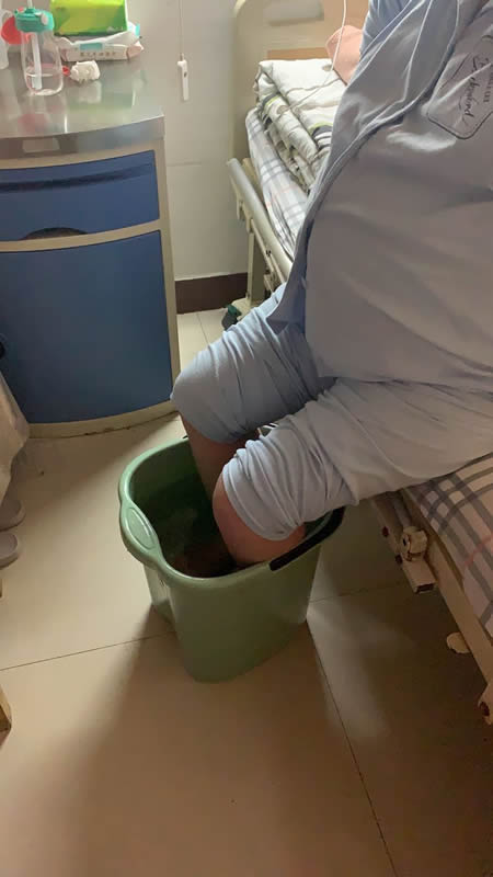 兩個寶寶的壓迫讓劉豔的雙腳逐漸浮(fú)腫,為了能讓她睡得安穩,夜班護(hù)士貼心的打了溫水調好溫度給她泡腳(jiǎo)。