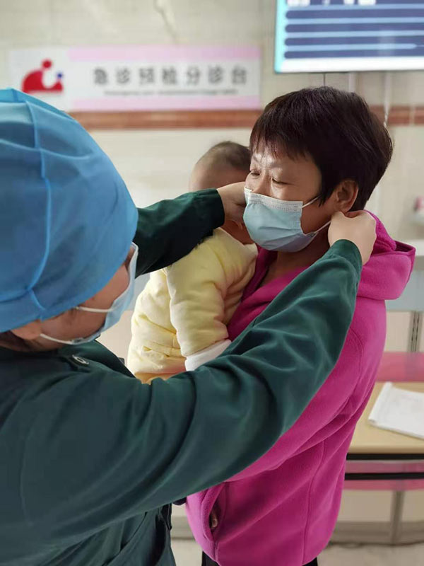 在疫情期(qī)間,急診護(hù)士發現一位抱孩子的婦女沒有佩戴口罩入院,於是為了保護病人的健康安全,護士親自為該婦女佩戴口罩。因此,這張照片取名為《您的健康“有(yǒu)”我守護》。